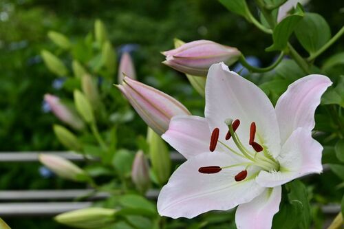 弘明寺からの帰路 たまたま立ち寄った公園で 見つけたユリの花。 白いユリたちの中に赤いユリも数株。