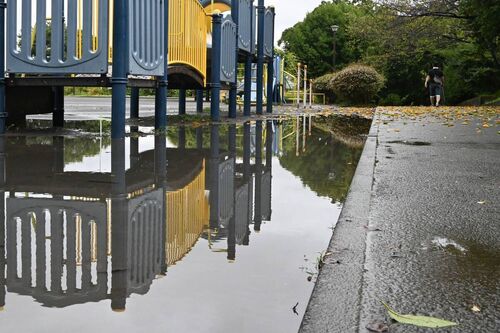雨が小やみになって公園を訪れてみると 水溜りに公園遊具が浮かんでいた。 @川上公園